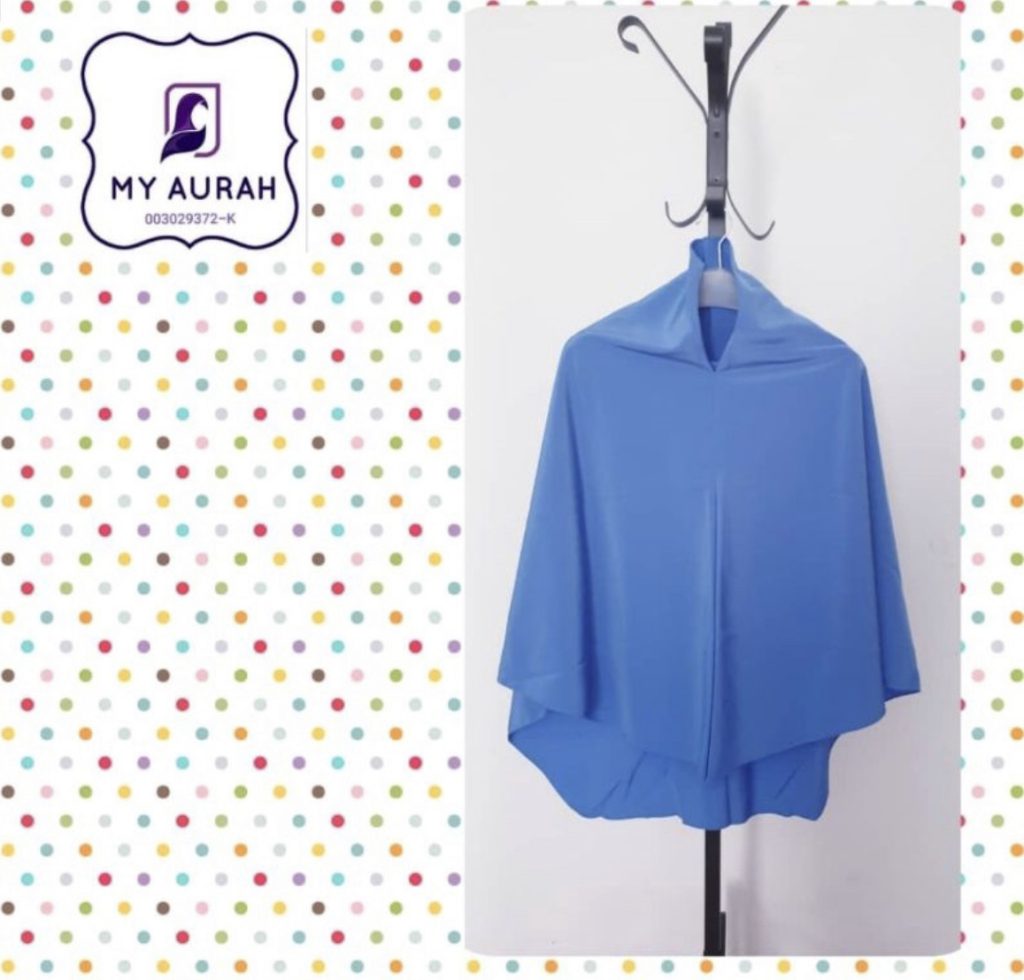 Tudung Labuh berwarna biru sesuai dengan seragam pengawas sekolah