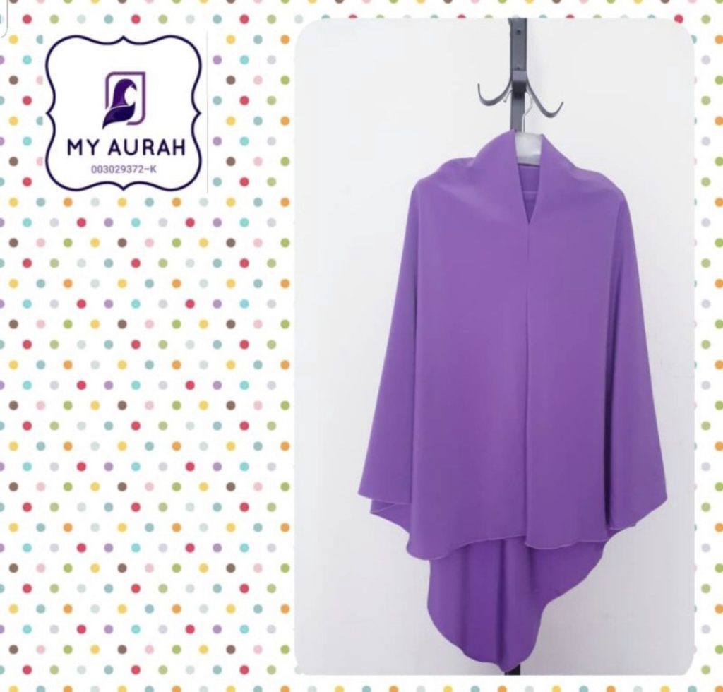 Tudung Labuh berwarna ungu tua sesuai dengan seragam pembimbing rakan sebaya